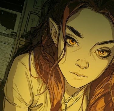 Her ear-points showed clearly - too sharp, too obvious. Not the delicate elfin points humans thought were beautiful. These were predator ears. Old World ears. The coppery shimmer in her eyes, the one Alex had called cool and Finn had found initially interesting before it became unsettling, blazed under direct light. Intense. Almost wild. Almost dangerous.