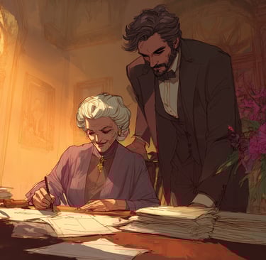 Across the polished mahogany of the grand library table sat Señor Alvaro Herrera. His presence was comforting, his dark, intelligent eyes filled with a gentle, almost worshipful understanding. He was, Tina thought with a surge of grateful affection, her spiritual guide, a soulmate who had finally shown her the true path to fulfillment after so many years lost in the golden, empty cage of her inherited wealth. The "Herrera Foundation for Cultural Renaissance," his quietly brilliant project, would do such good with these assets - saving native art, funding local schools, helping start a new golden age for Oaxaca. It was a legacy far grander, far more meaningful, than simply holding onto stocks and bonds.