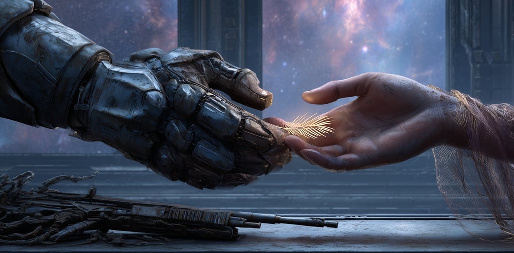Brynja saluted. Turned. Walked to the lift. The bio-rifle stayed behind. The golden feather burned in her palm.