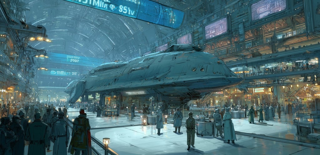 The "Antiquarian" waited at the far end. Bullet-shaped hull shimmering with chameleon-like material that rippled, shifted, reflected the station's lights in patterns that hurt to track. As long as any pre-industrial ship. Moving with organic grace as docking clamps released.