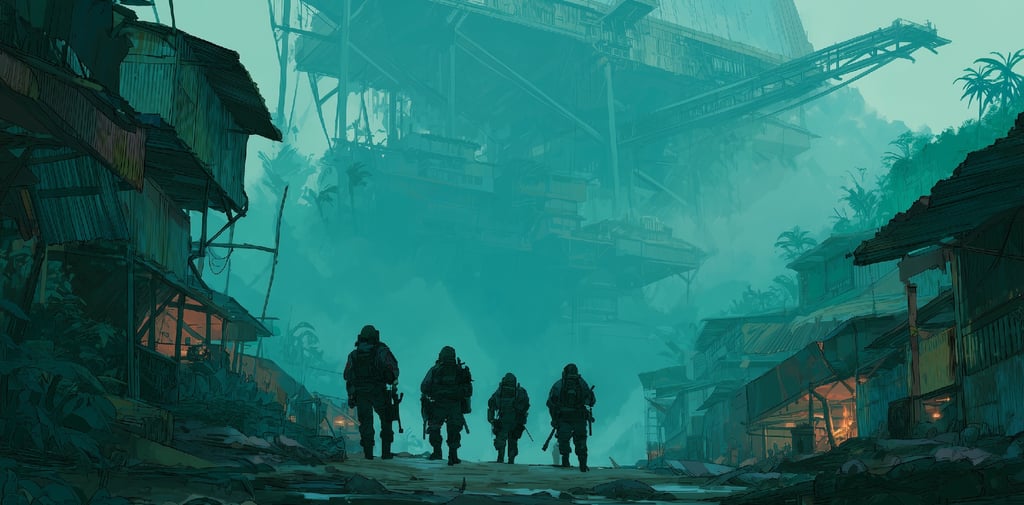 Night sealed the Kivu jungle. The canopy vanished, trapping the day's heat and humidity. Under the oppressive darkness, Styx Squad began their infiltration, slipping into the sprawling shantytown where the local laborers were housed. A place of patched-together huts, open fires, and the smell of woodsmoke and simmering despair. This was where the mine's truest story was written.