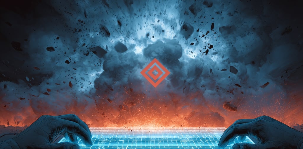 The pillar was rubble. The ceiling was failing. And in the strobing silence of what he'd made, he felt something settle into place that he hadn't wanted confirmed: a part of him had just broken in exactly the same way. Not cleanly. Not fixably. Just broken.